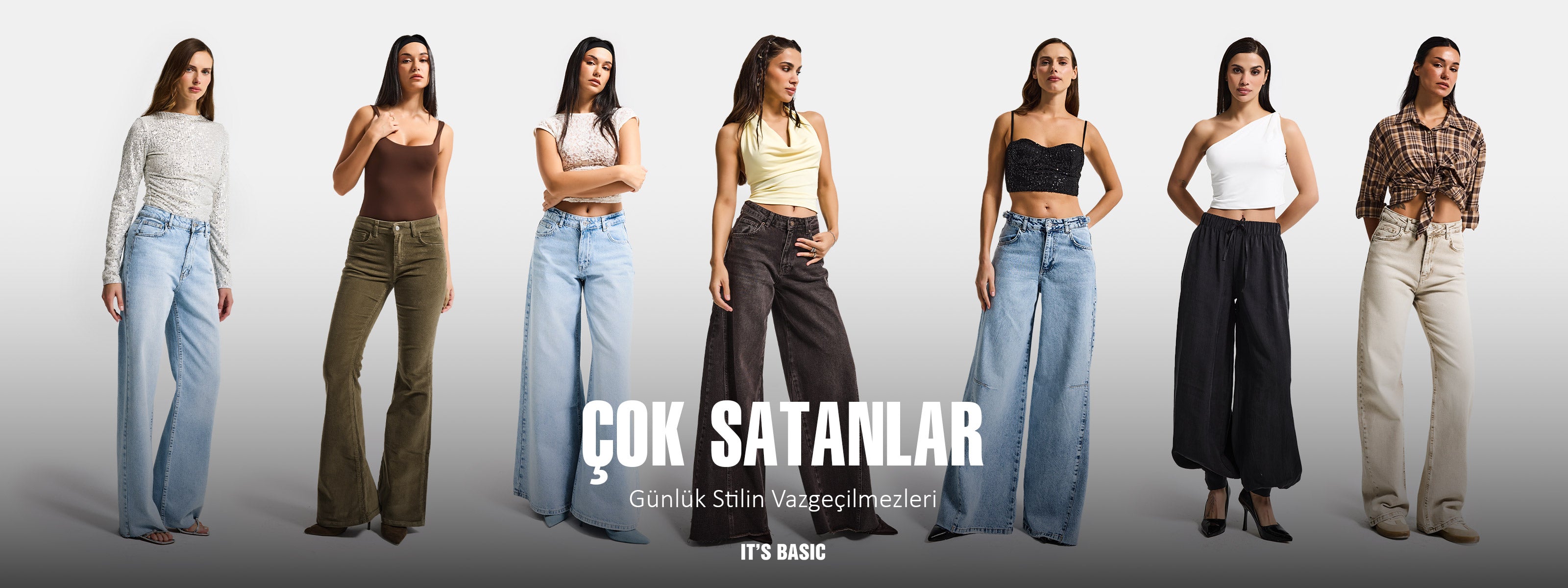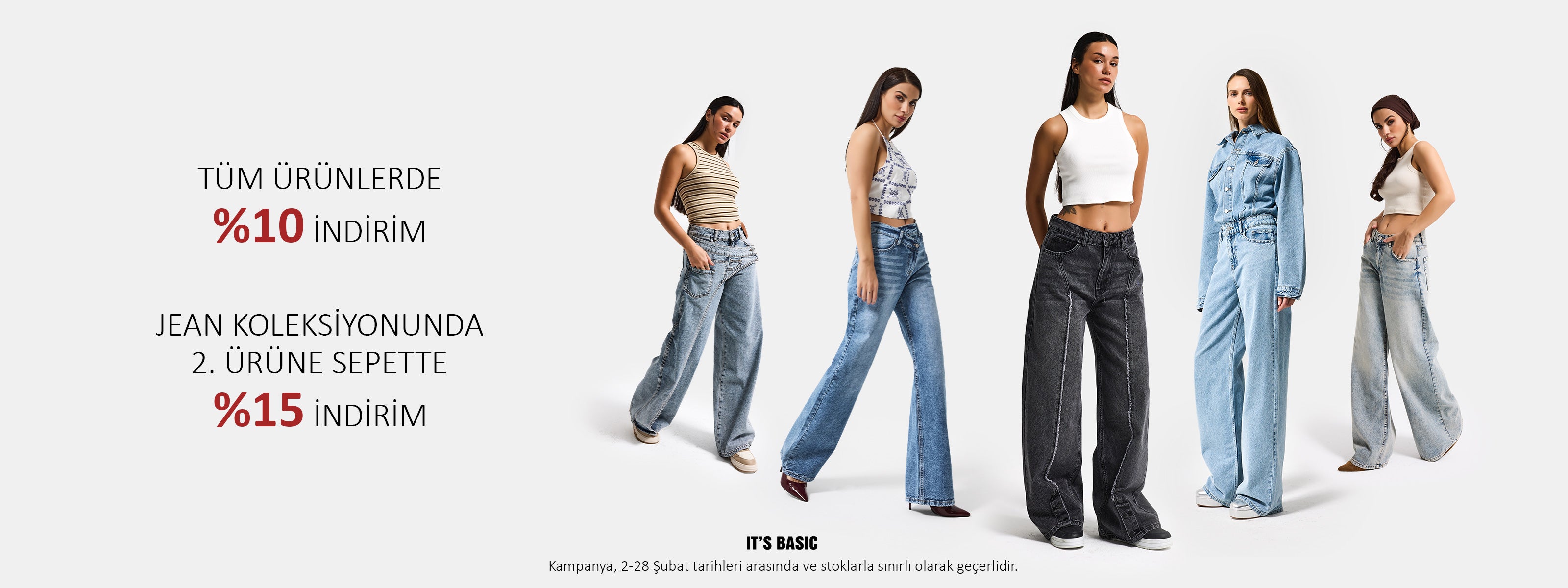 Sezonun favori jean kesimleri baggy, flare, palazzo ve straight It’s Basic yorumuyla bir arada. Günlük stile güçlü bir dokunuş katmak için jean koleksiyonunu keşfet.