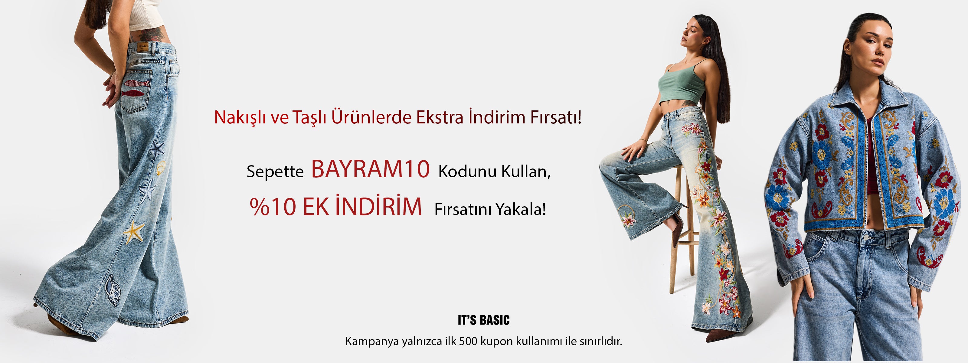 Jean ve denim, modanın değişmeyen klasiklerinden. Ancak It’s Basic, bu klasik dokuyu modern detaylarla harmanlayarak zamansız bir şıklık sunuyor. Kadın jean pantolon modellerinden taşlı jeanlere, nakışlı denimlerden dantel detaylı tasarımlara kadar geniş koleksiyon, tarzınızı en doğal ve en özgün şekilde ifade etmeniz için hazır.