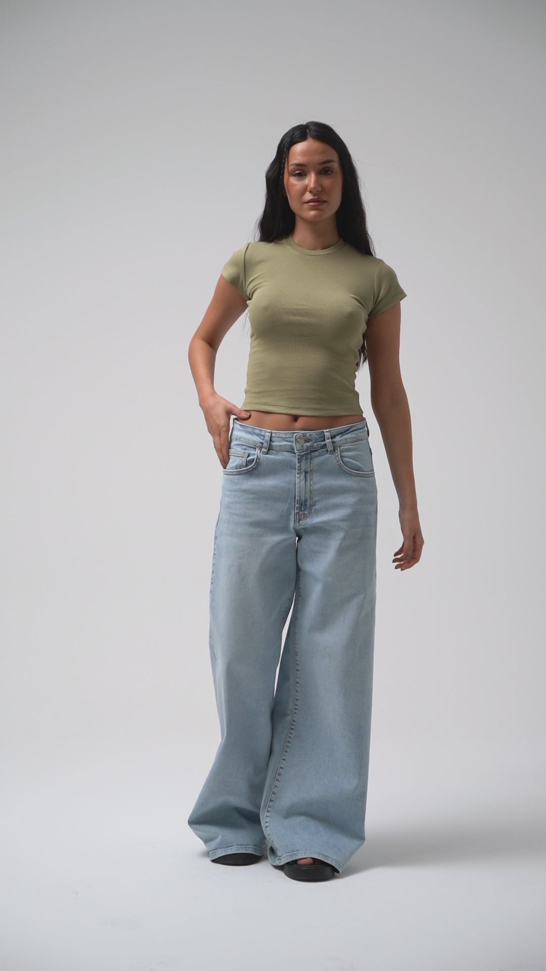 Kadın Snow Kot Rengi 4S5-32 Mega Baggy Fit Bol Kesim %100 Koton Denim Jean