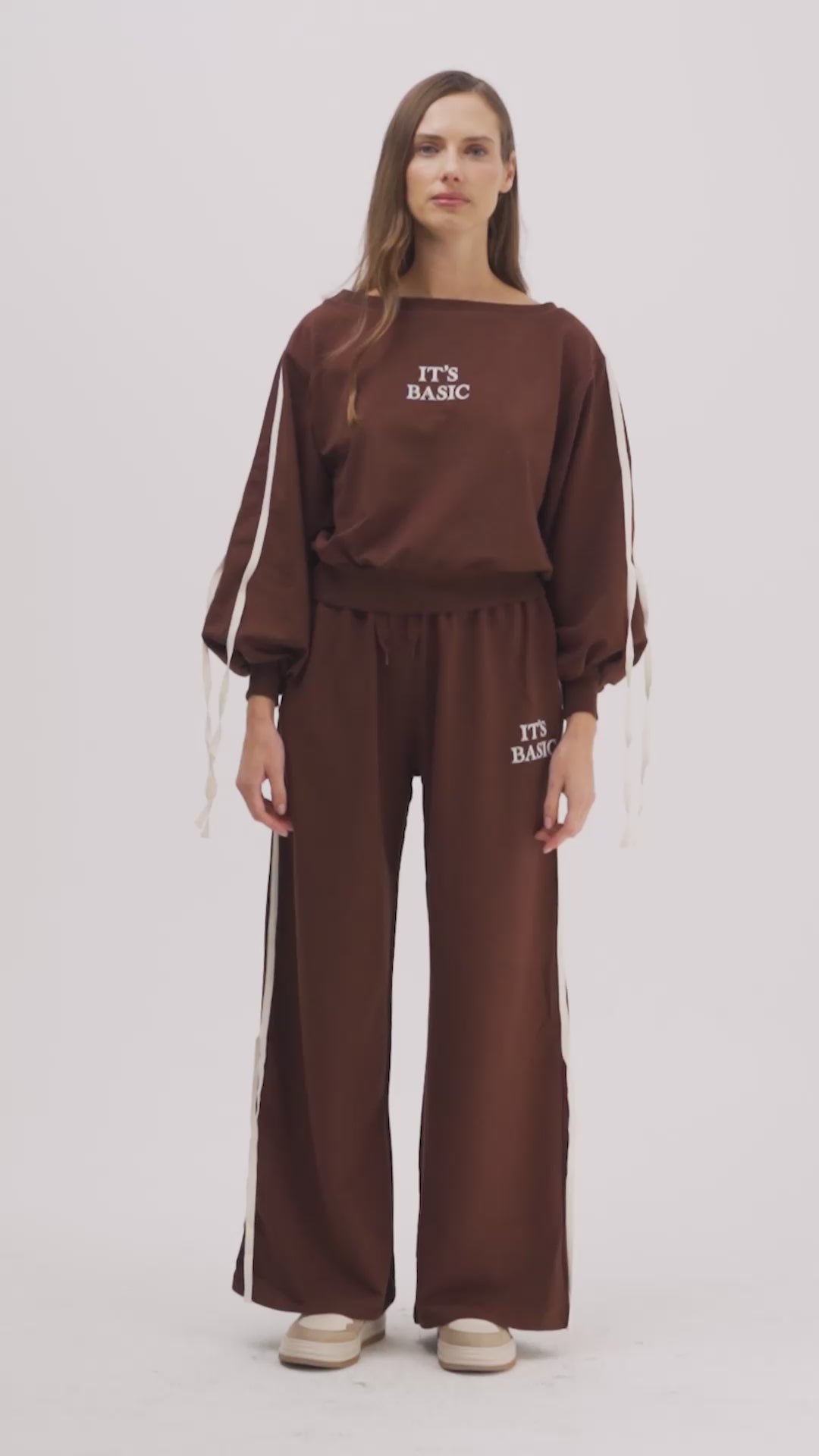 Kadın Kahverengi w5-16 Sweatshirt Eşofman Pantolon 2'li Alt Üst Tasarım Takım