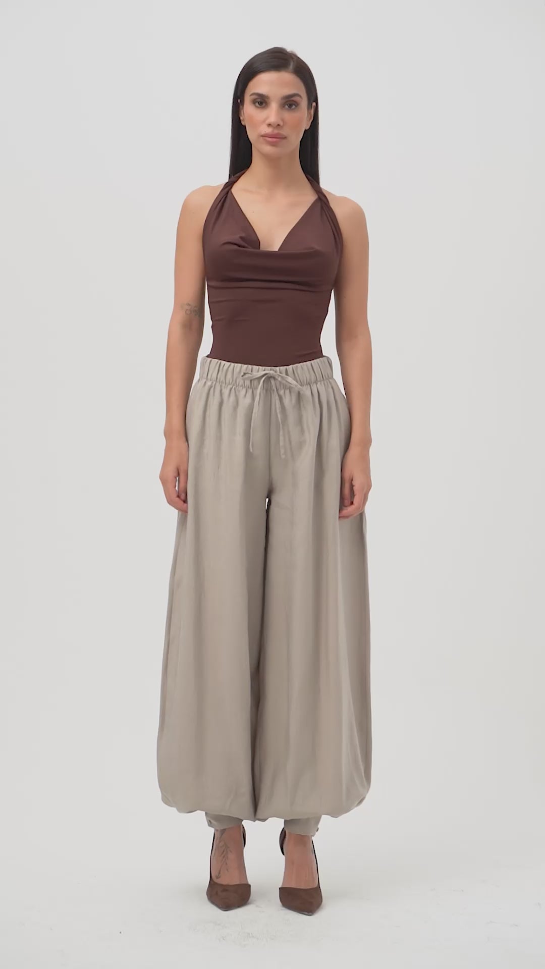 Kadın Taş Renk s5-106 Baggy Fit Viskon Kumaş Rahat Kesim Yürüyüş Pantolonu