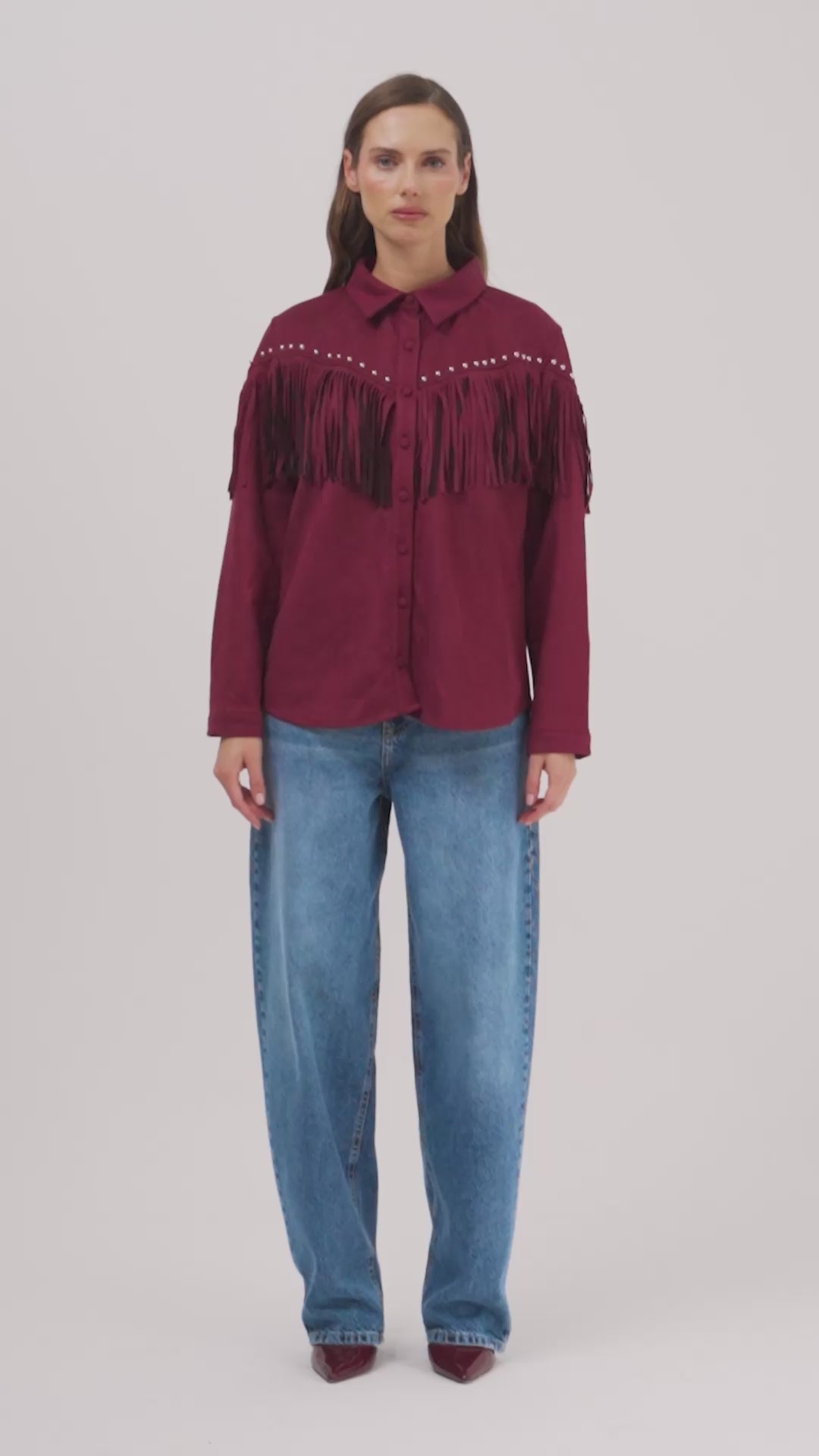 Kadın Bordo Süet Kumaş Püskül ve Drop Detaylı Tasarım Gömlek Ceket