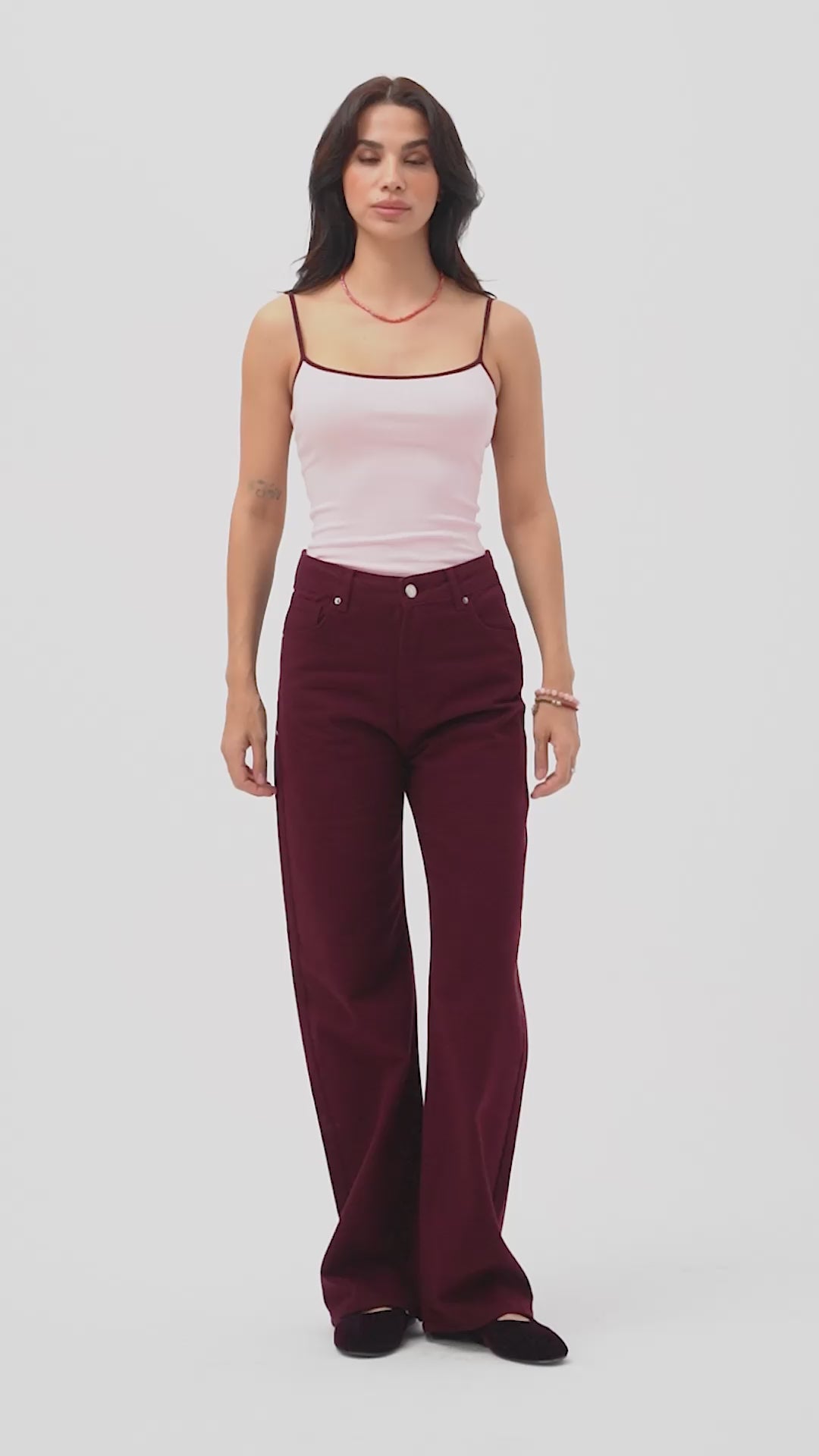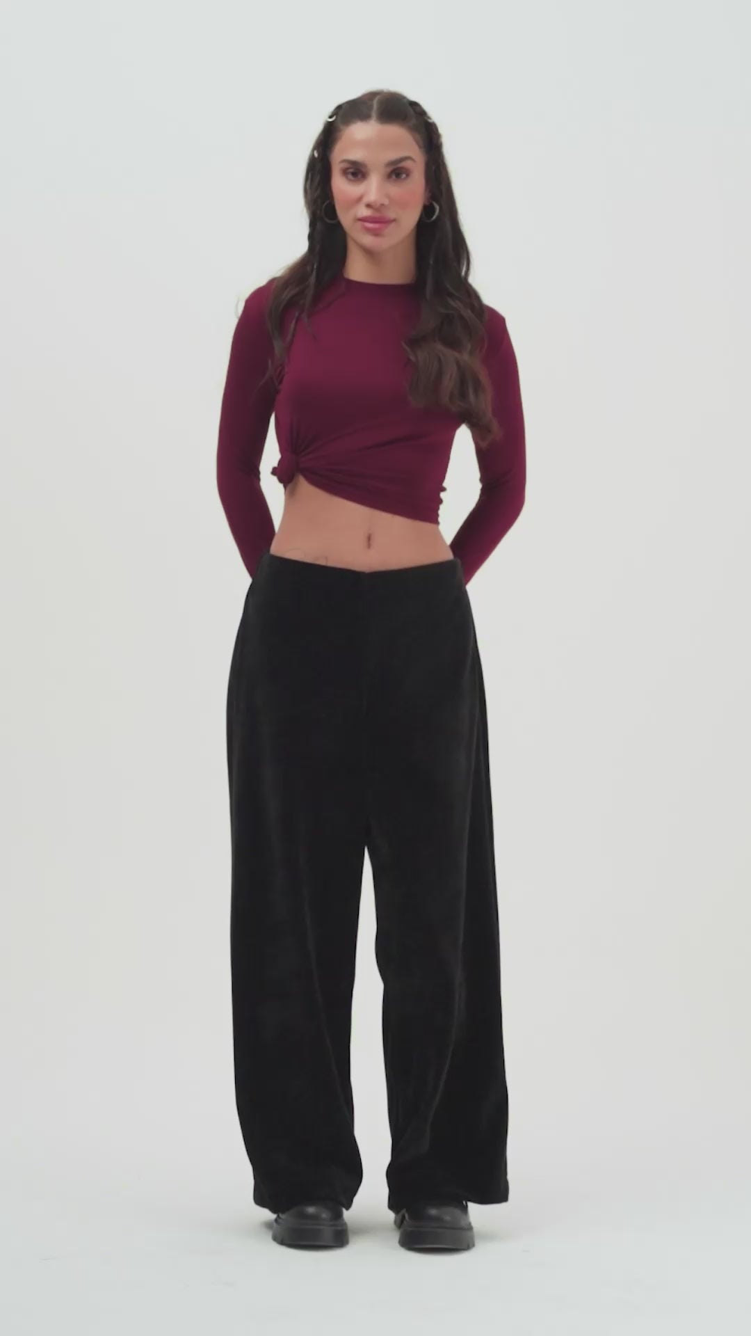 Kadın Bordo s6-35 Neptun Kemer Detaylı Palazzo Fit Pileli Pantolon
