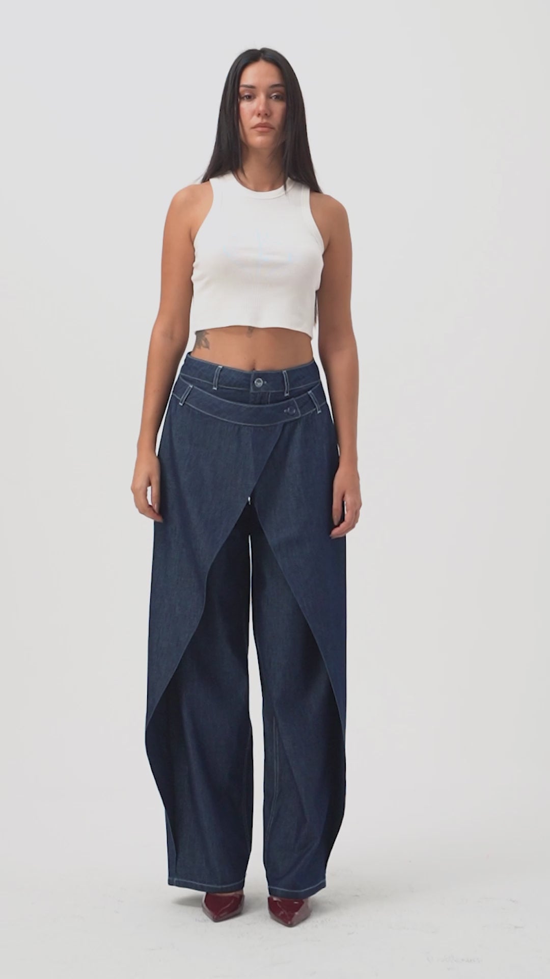 Kadın Kot Rengi Pencere Detaylı Palazzo Fit Tasarım Denim Jean