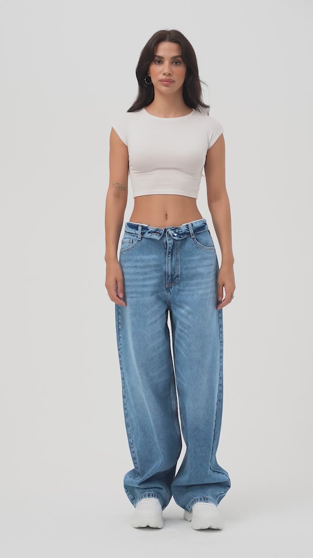 Kadın İndigo 7s6-50 Süper Ballon Fit Bol Kesim Paça Detaylı Tasarım Denim Jean