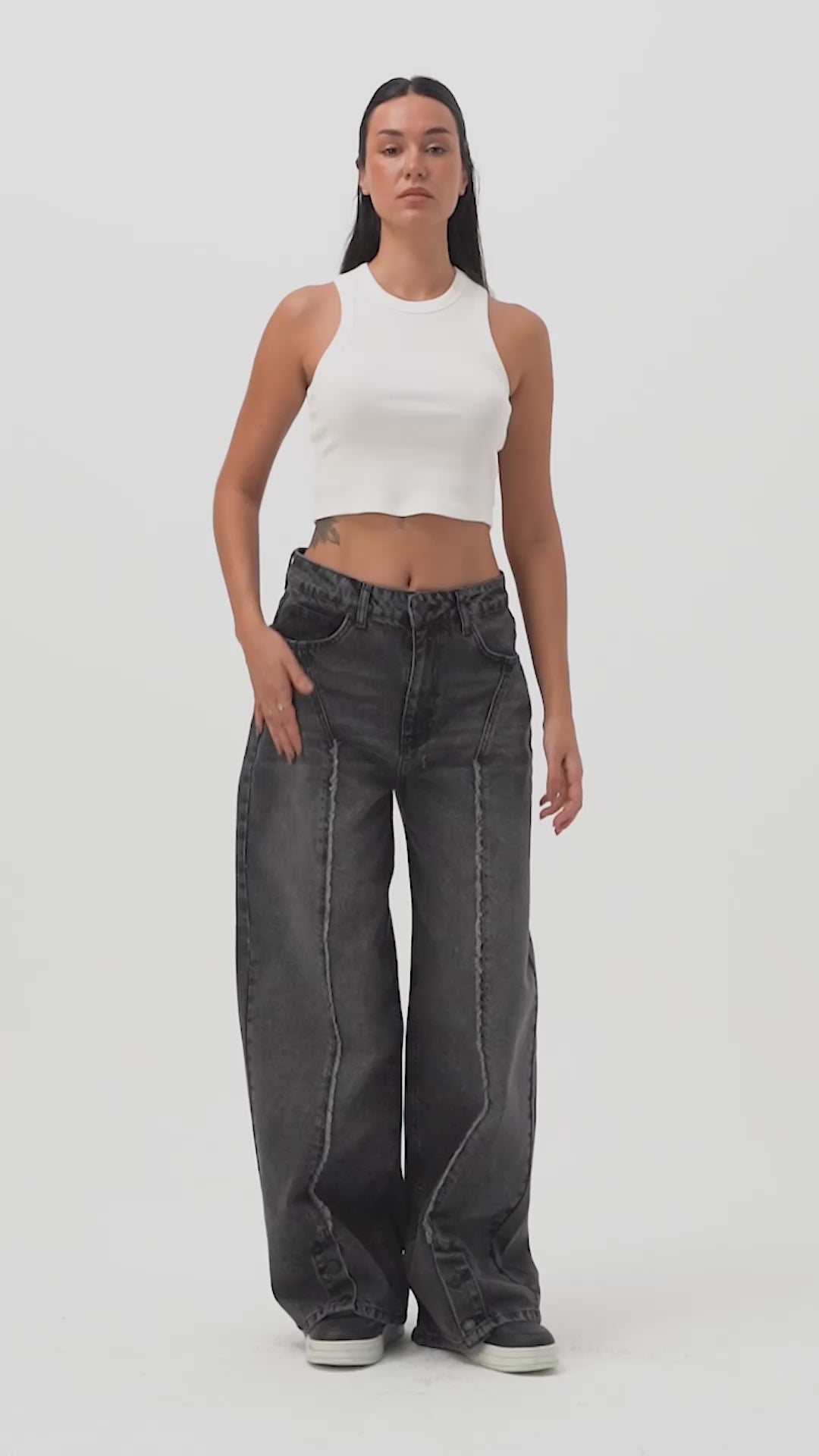 Kadın Füme Renk 4s6-14 Süper Baggy Paça Detaylı Tasarım Denim Jean