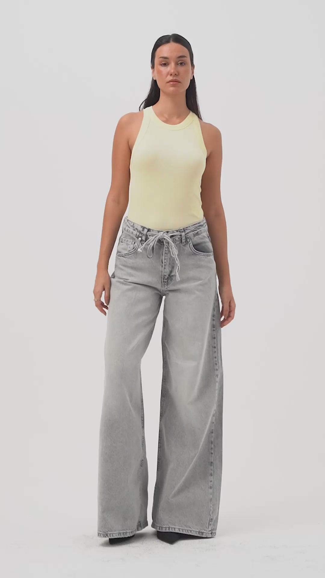 Kadın Gri 4s5-12 Palazzo Fit Bağcıklı %100 Koton Denim Jean