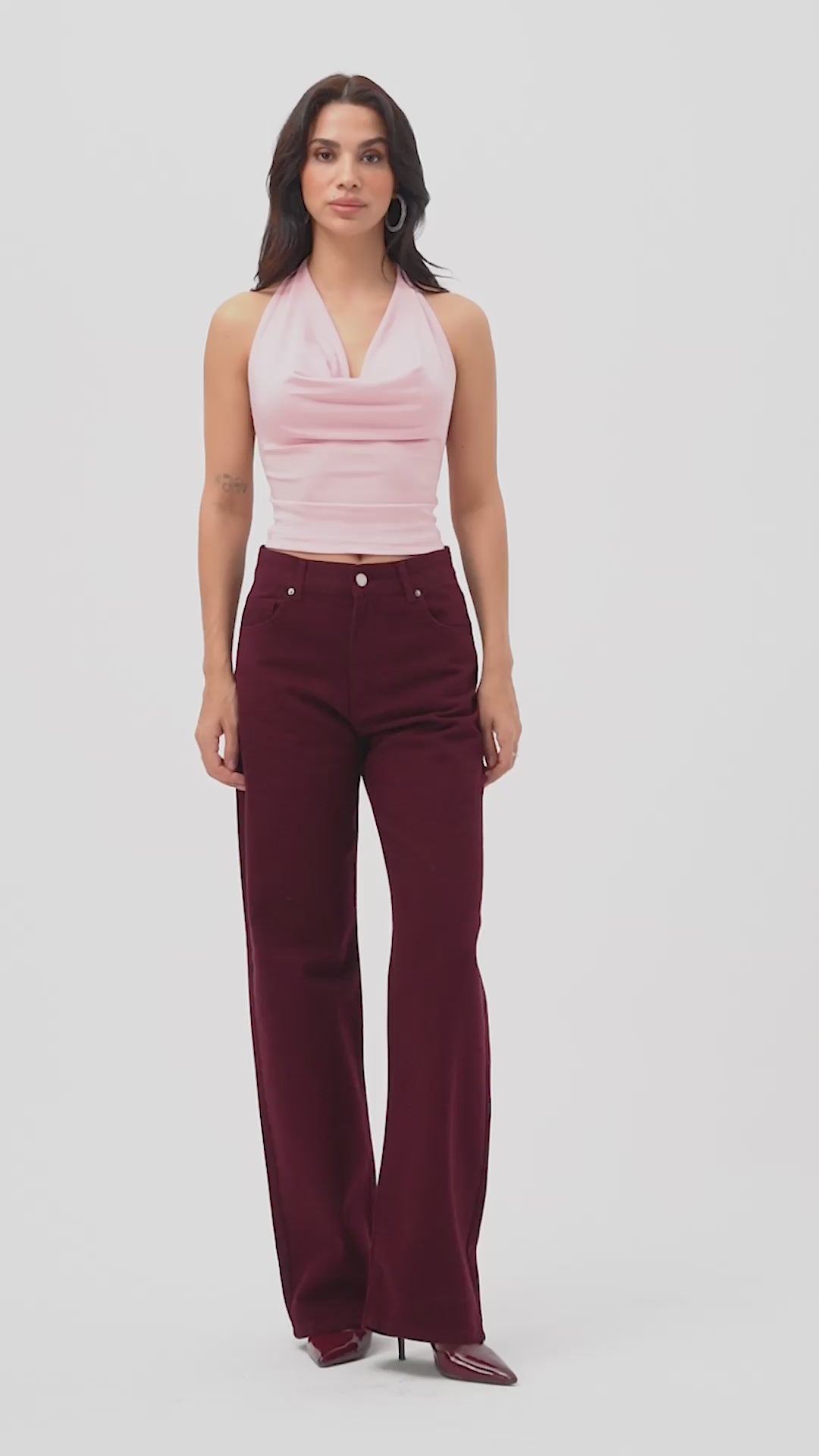 Kadın Kahverengi Aksesuar Detaylı Bol Kesim Dokuma Kumaş Özel Tasarım Pantolon