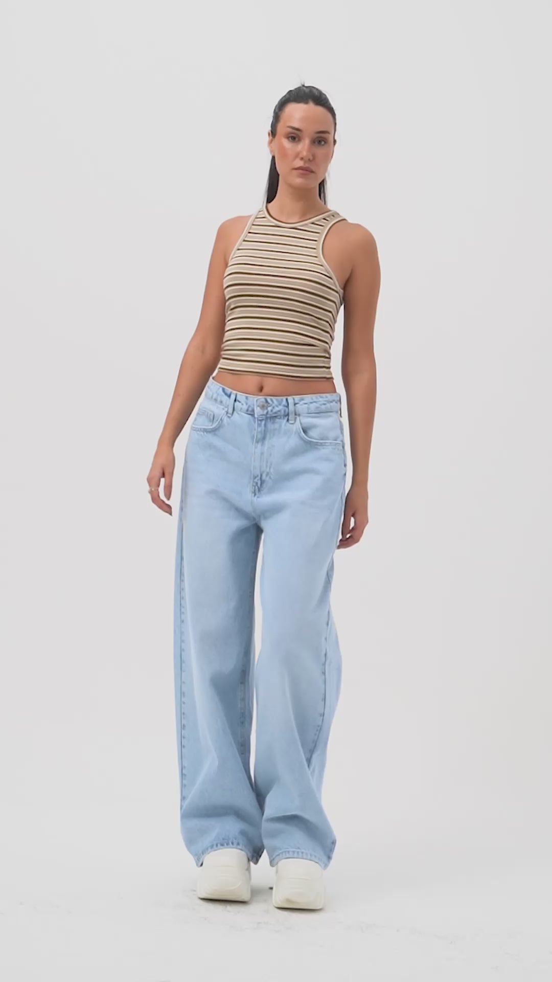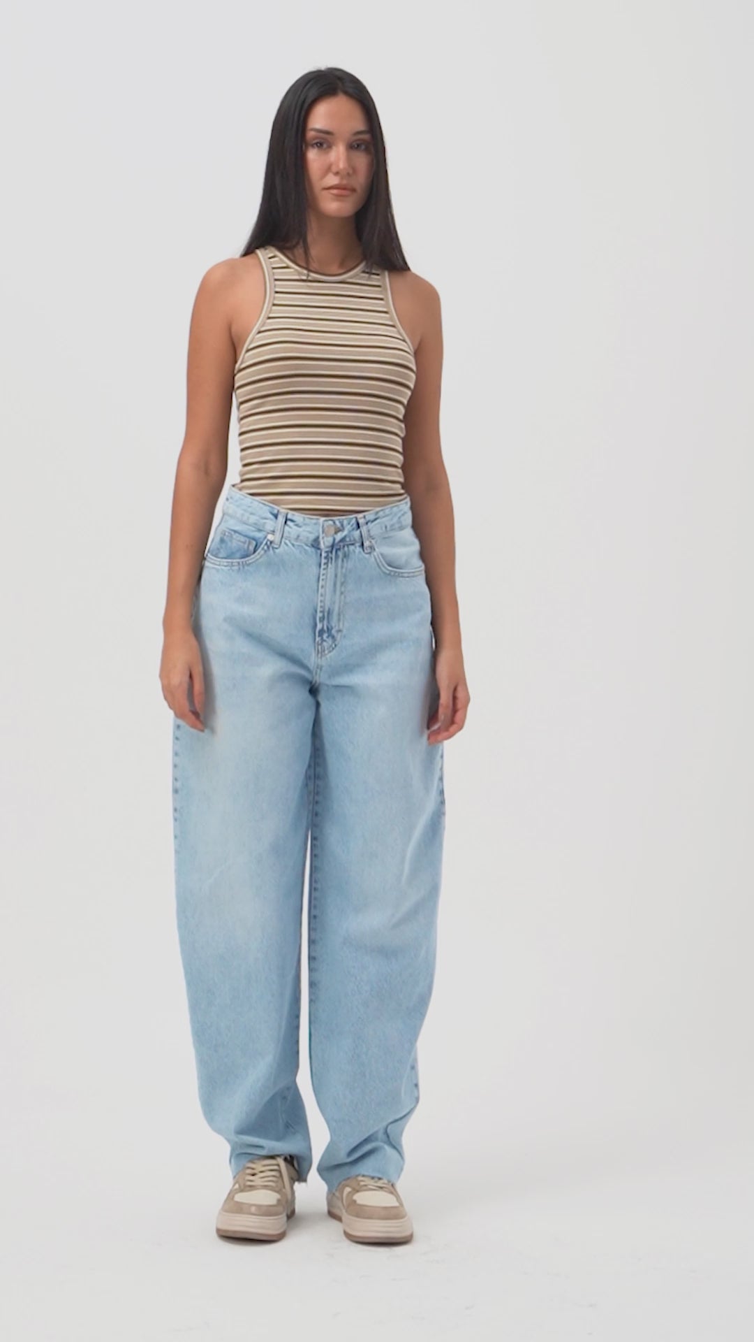 Kadın Çizgili Ekru Bol Kesim Askılı Özel Tasarım Elbise Tulum
