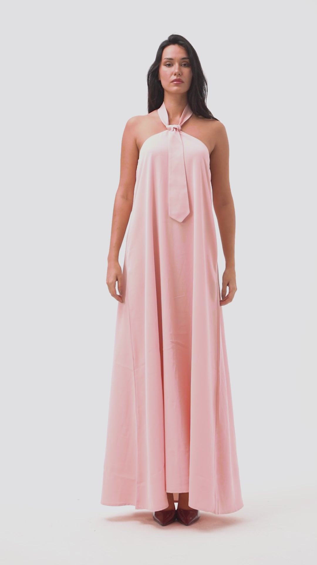 Kadın Pembe Renk Bol Kesim Kravat Detaylı Boyundan Bağlamalı Tasarım Elbise