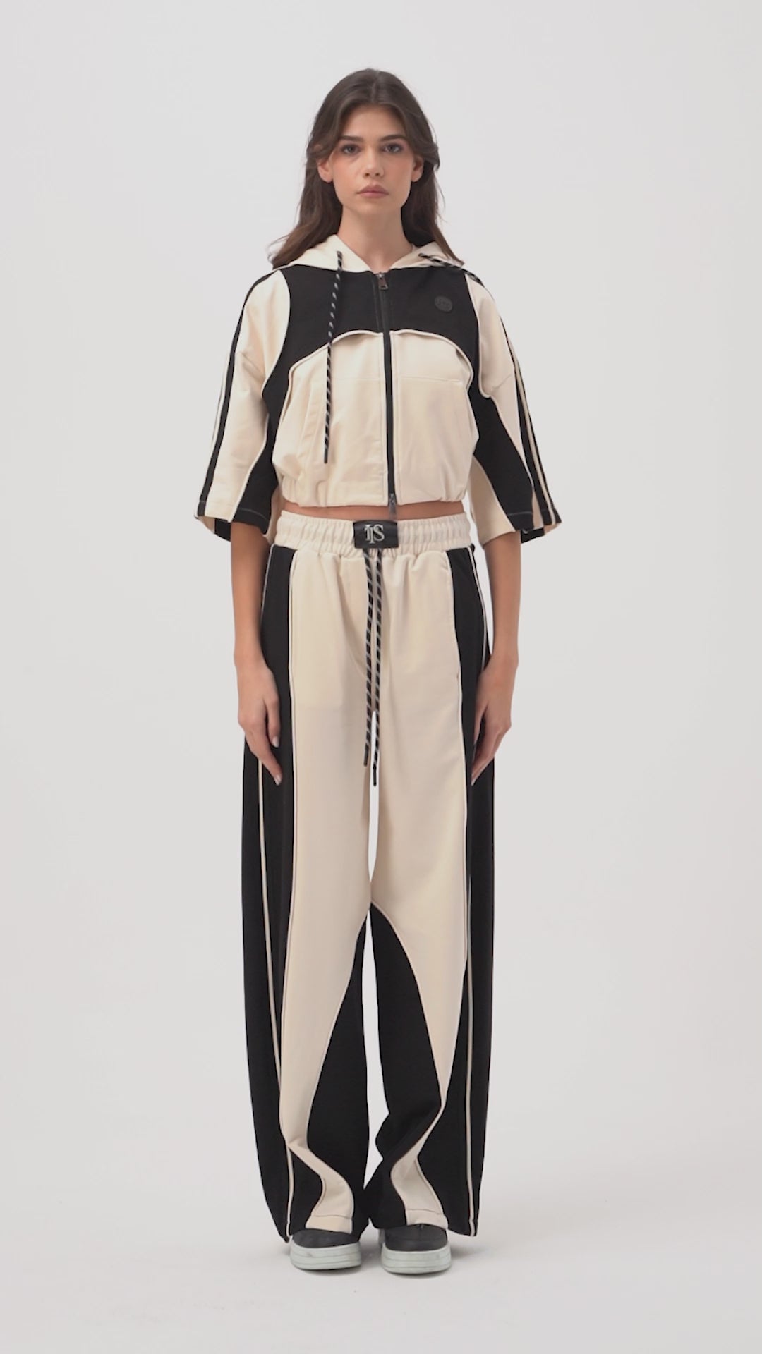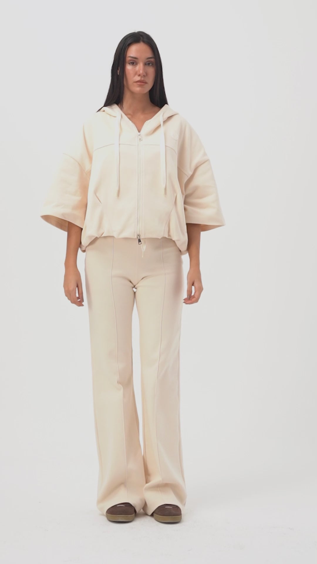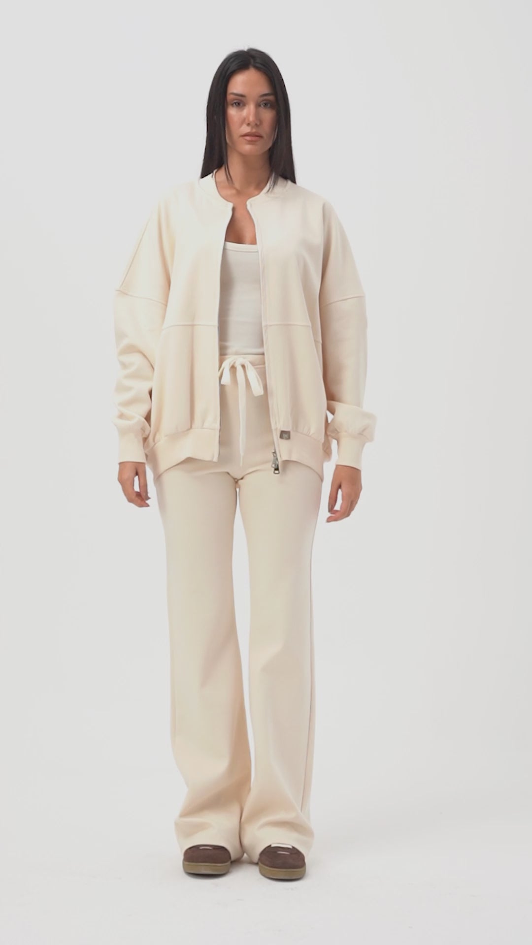 Kadın Ekru s6-105 Alt Üst Sweatshirt Polar Yürüyüş Pantolonu 2'li Tasarım Takım