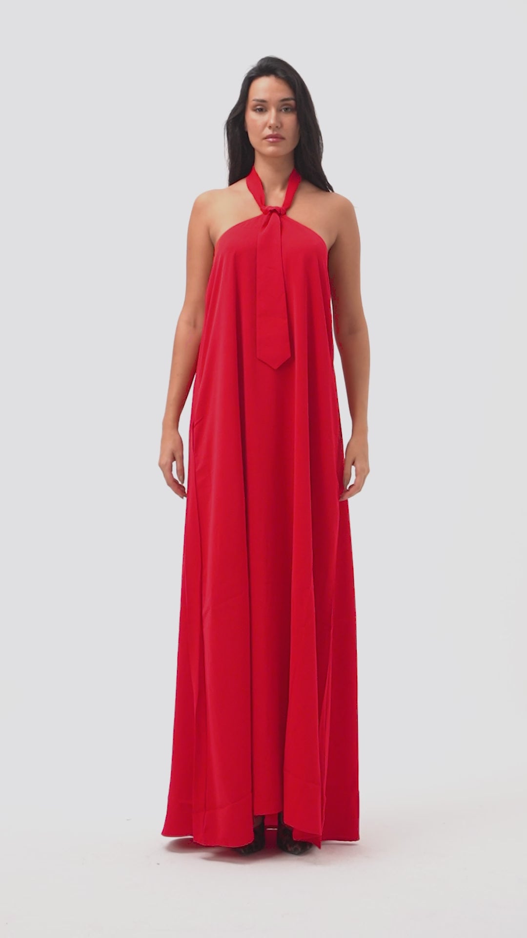 Kadın Kırmız Renk Bol Kesim Kravat Detaylı Boyundan Bağlamalı Tasarım Elbise