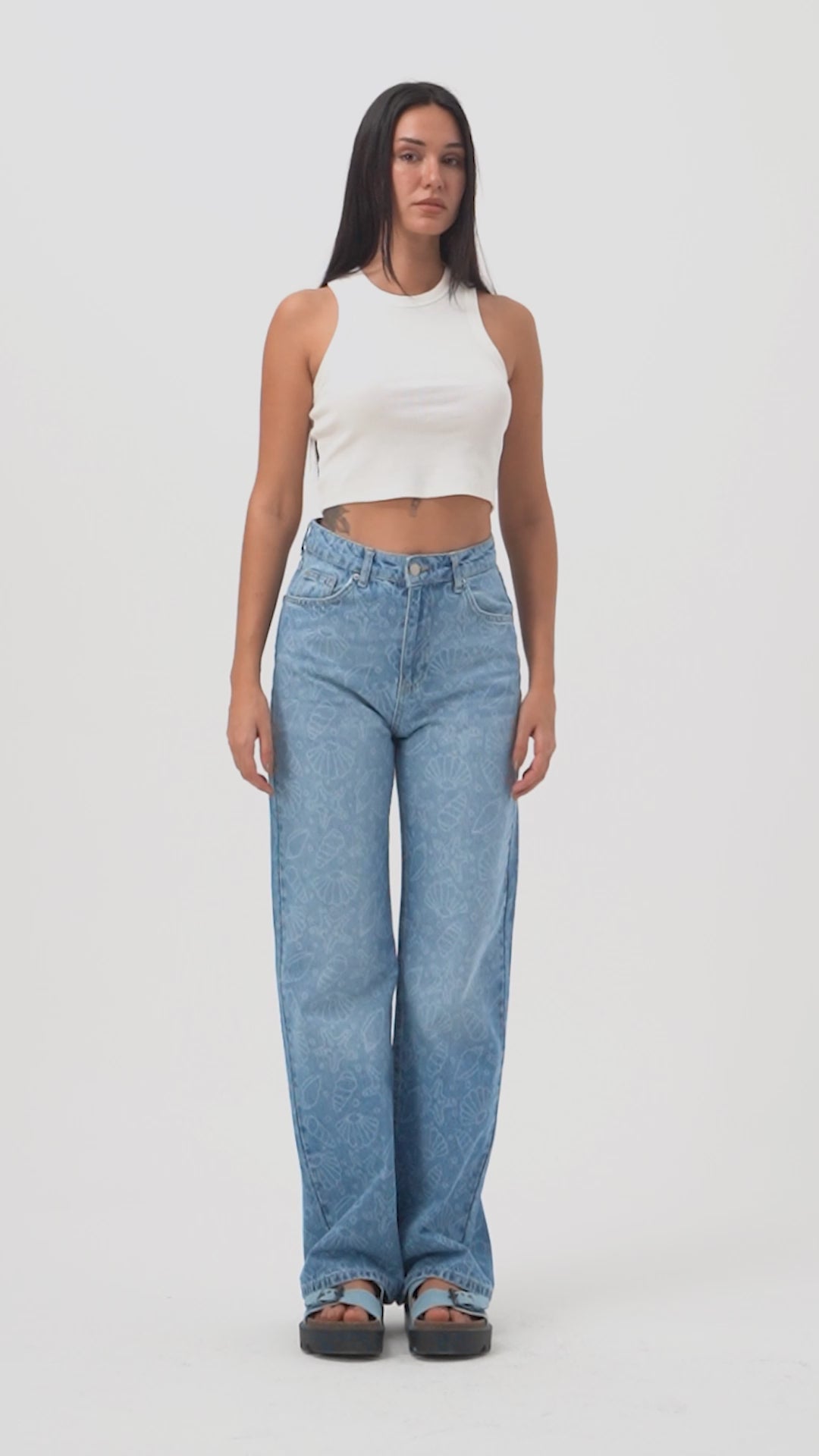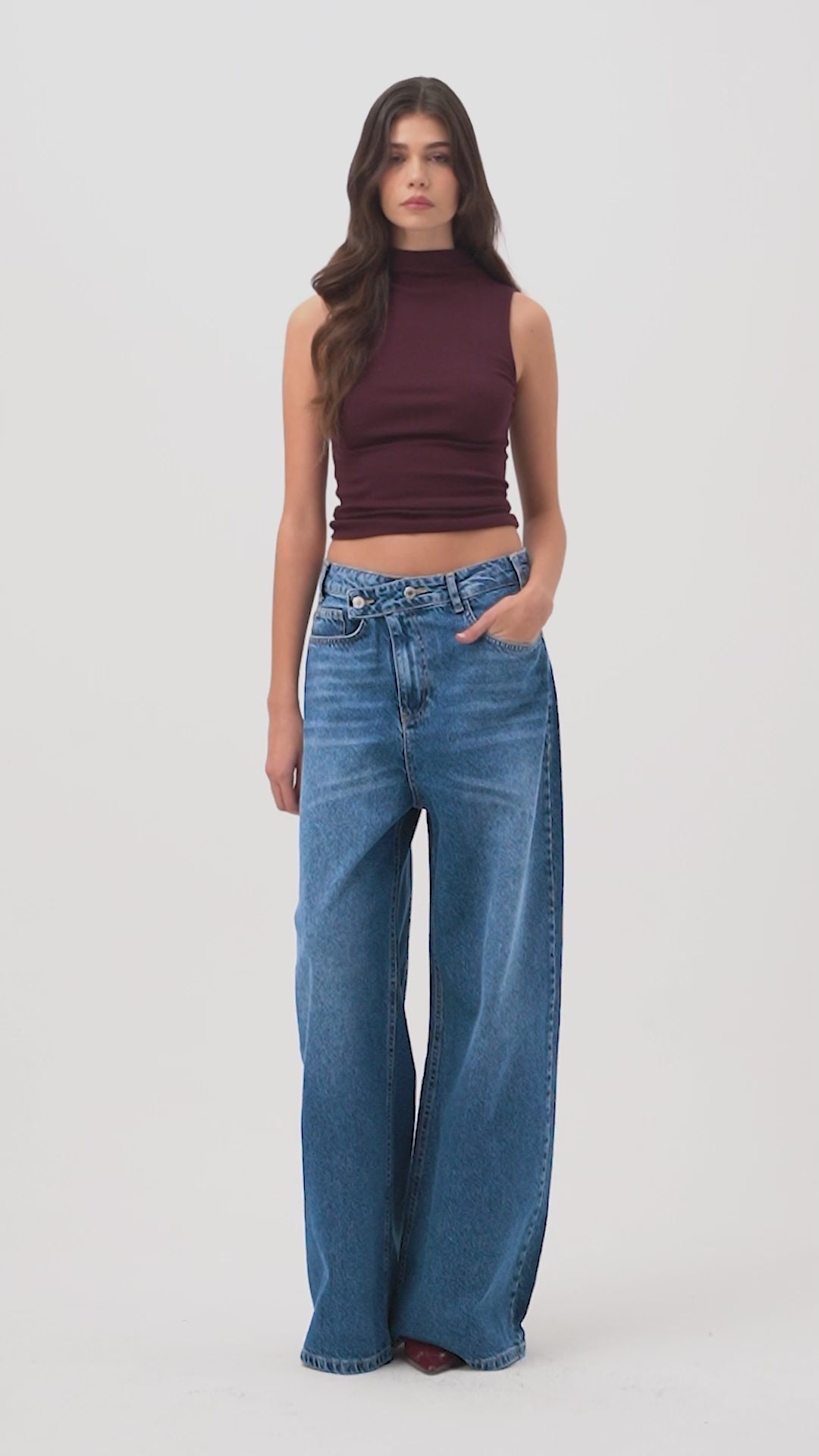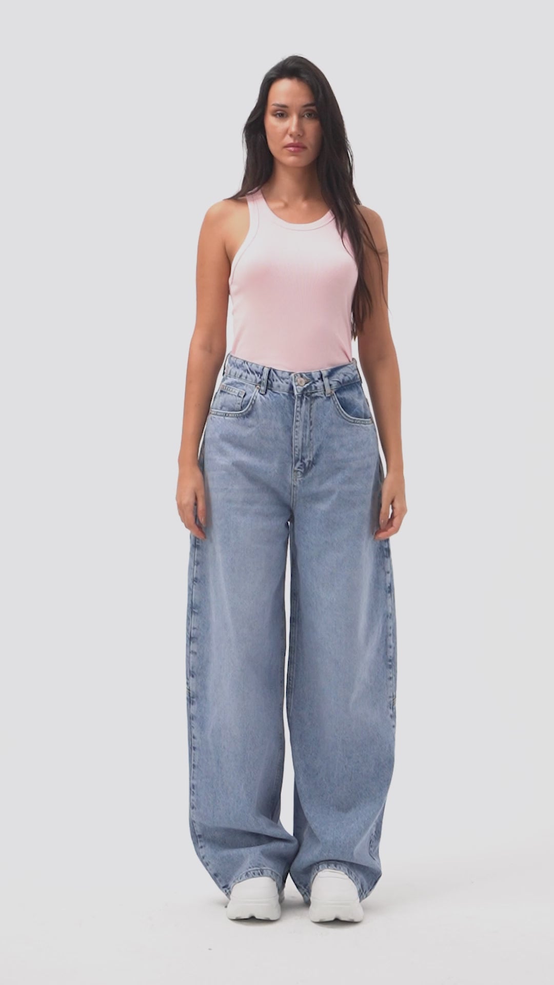 Kadın Mavi 2s6-24 Wide Leg Fit Bol Kesim %100 Koton Özel Tasarım Denim Jean