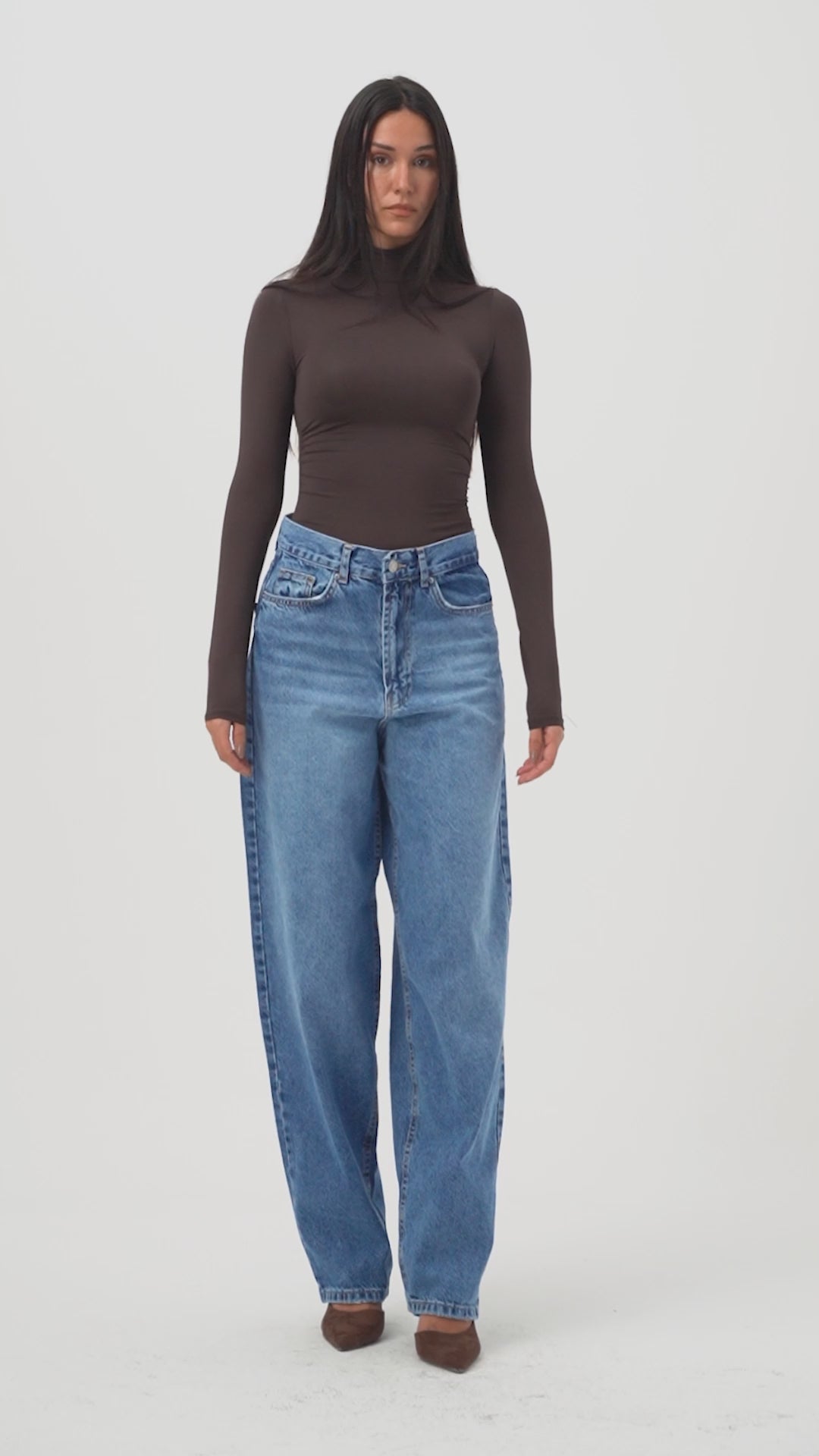 Kadın Koyu Kahve 4s6-16 Mega Baggy Fit Kemer Detaylı Bol Kesim Denim Jean