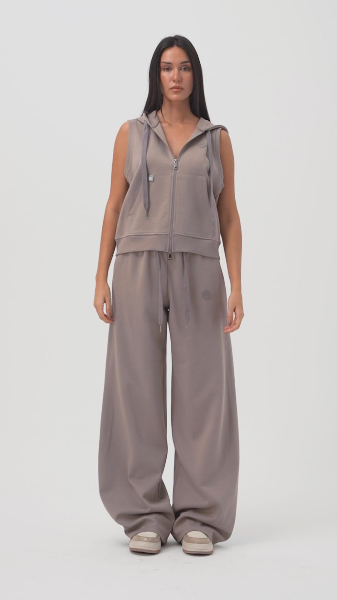 Kadın Antrasit s6-45 Alt Üst Kapüşonlu Yelek Yürüyüş Pantolonu 2'li Tasarım Takım