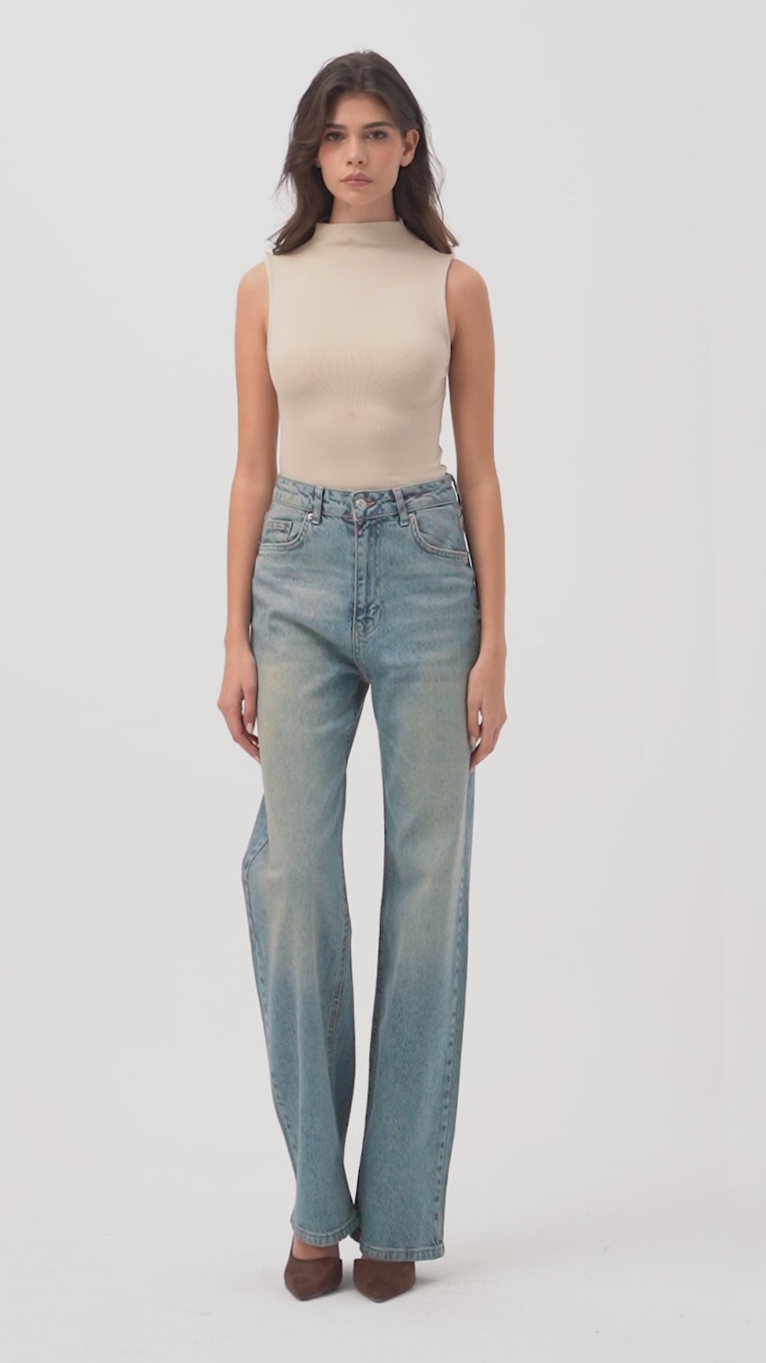 Kadın Taş Rengi 4s6-158 Elephant Leg Fit Süper Bol Kesim Denim Jean
