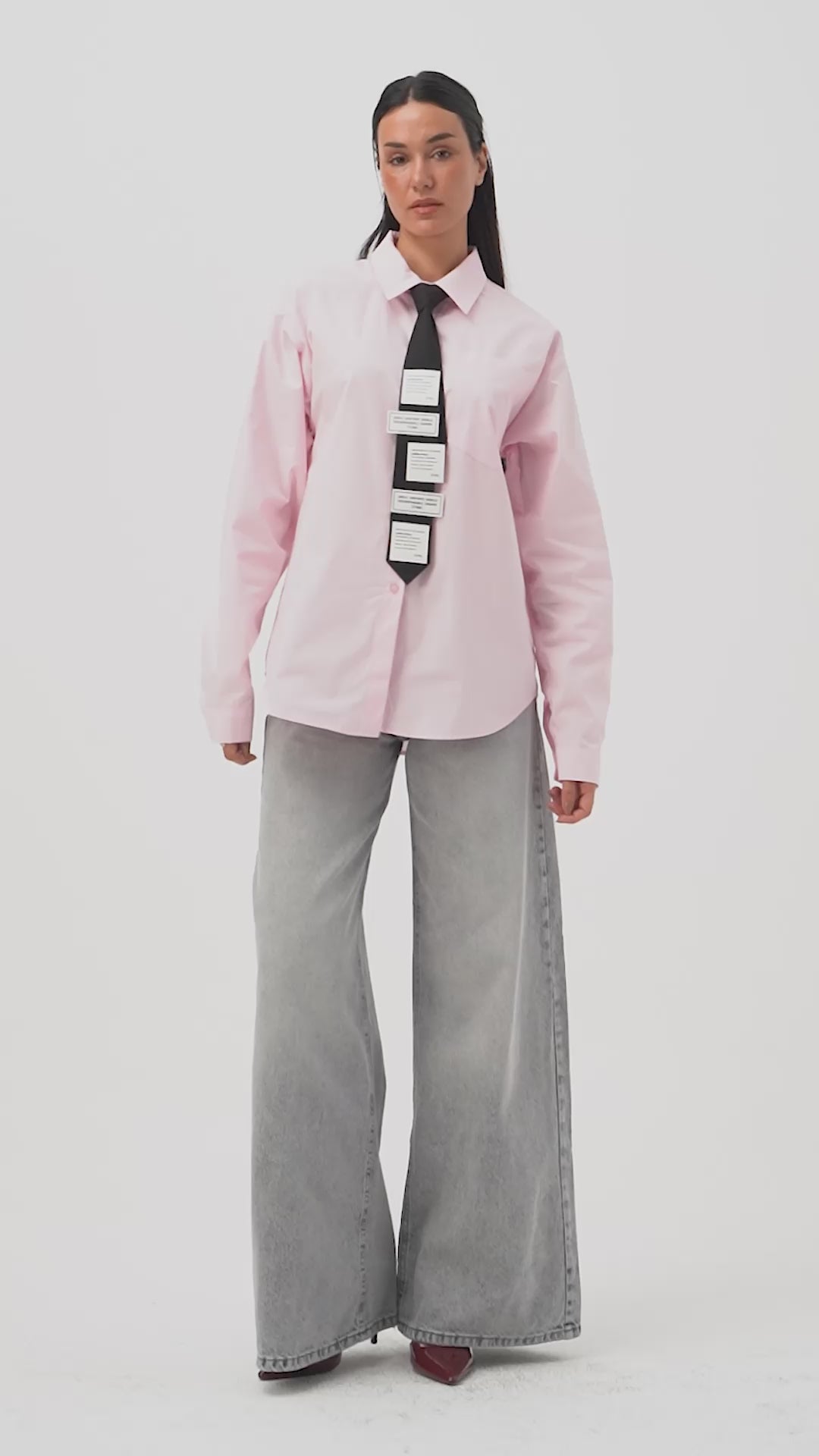 Kadın Pembe Renk Oversize Kravatlı Özel Tasarım Bol Kesim Gömlek