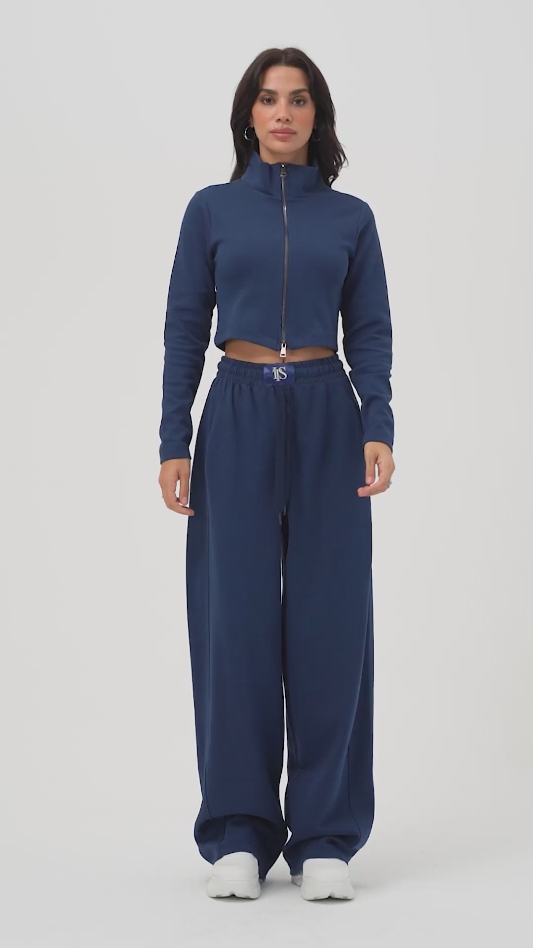 Kadın Lacivert Renk w5-56 Örme Kumaş Eşofman ve Fermuarlı Sweatshirt Alt Üst 2'li Kombin Takım