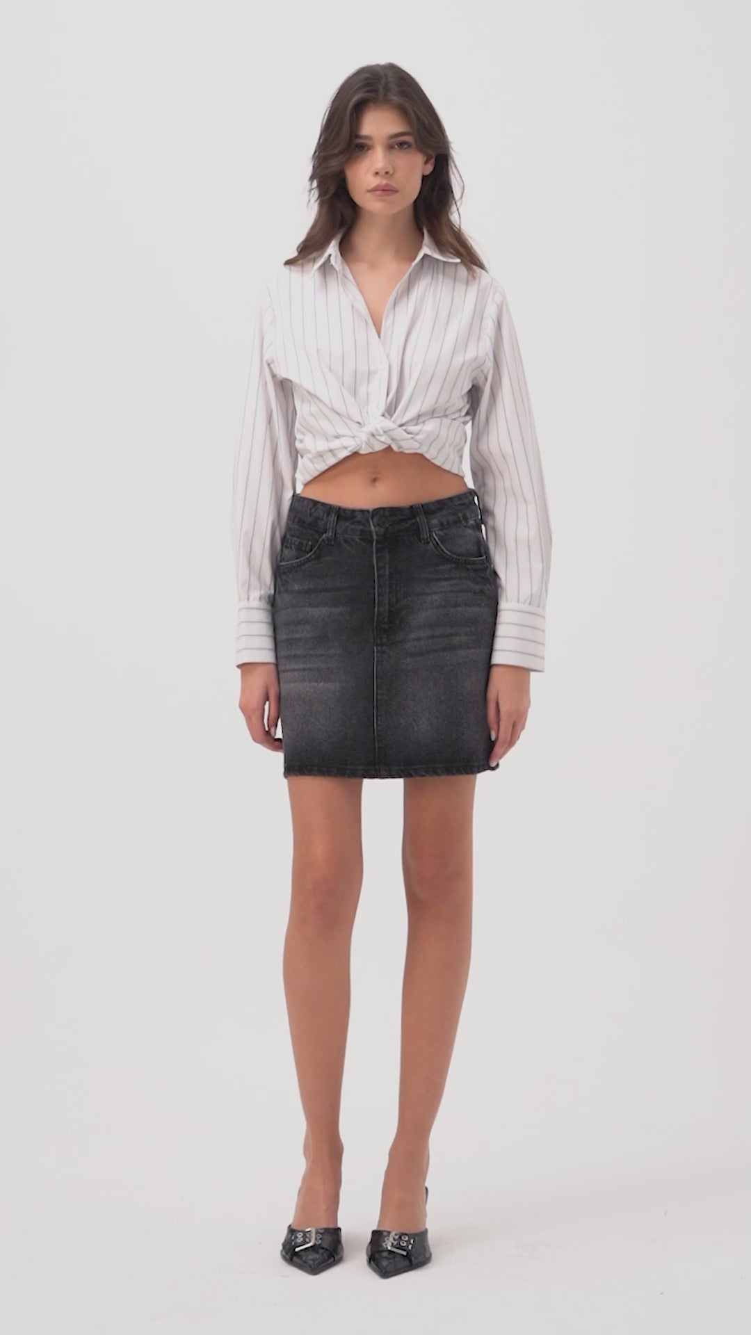 Kadın Koyu Füme 2s6-1 Straight Fit %100 Koton Mini Denim Etek