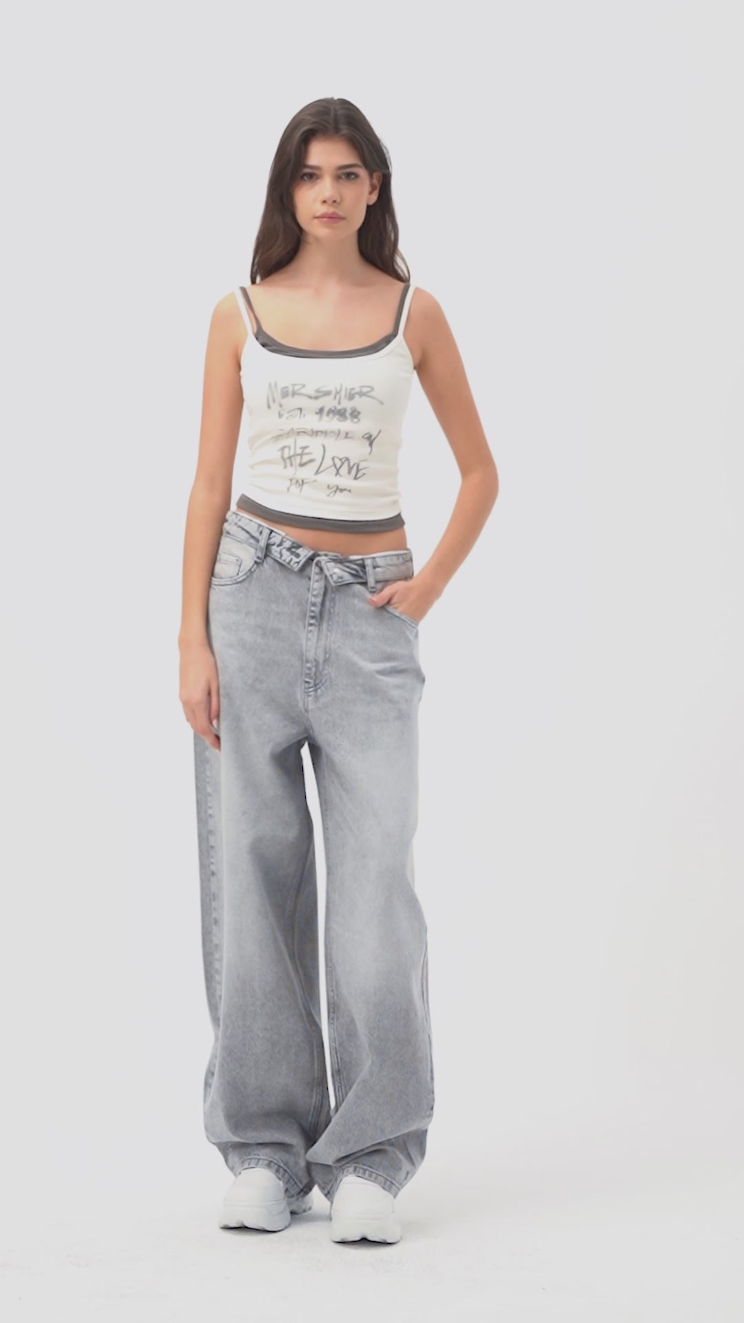 Kadın Gri 4s6-12 Straight Fit Kemer Detaylı Özel Tasarım Denim Jean