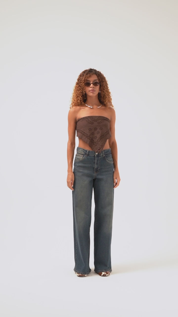 Kadın T.Kot Rengi 3S5-75 Bağcık Detaylı %100 Koton Tasarım Denim Büstiyer