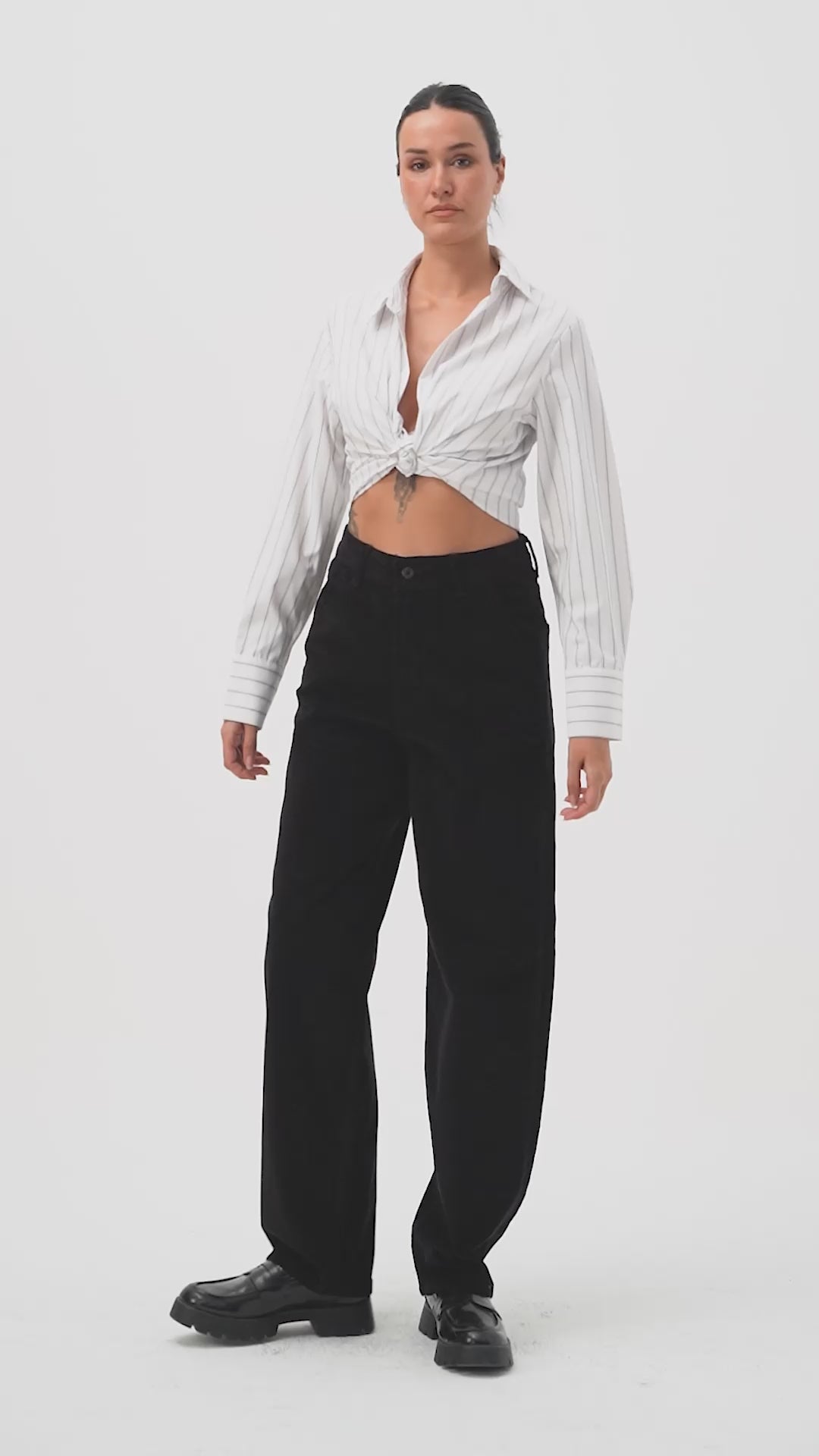 Kadın Siyah Renk 26w5-1 Straight Cropped Fit İnce Fitilli Velvet Kadife Kumaş Pantolon