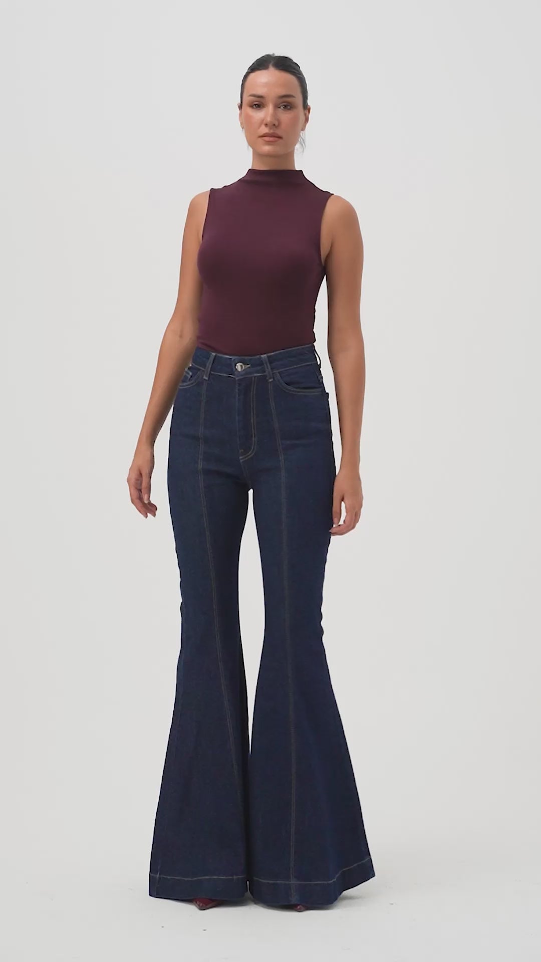 Kadın T.Kot Rengi 2w5-8 SLN05 Mide Rise Flare Fit Süper Esnek Kumaş İç Boy 83cm Denim Jean