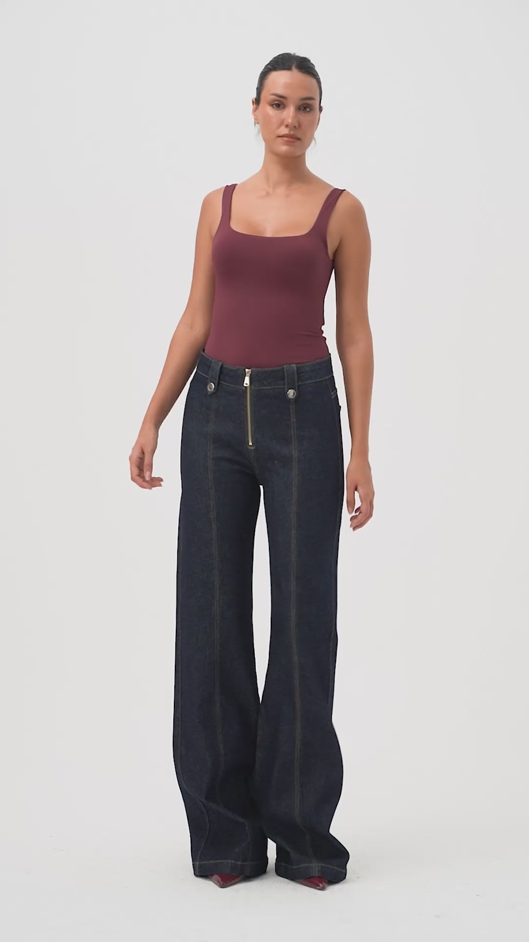 Kadın Lacivert Renk 19w5-33 Yüksek Bel Flare Fit Aksesuar Detaylı Esnek Kumaş Tasarım Denim Jean