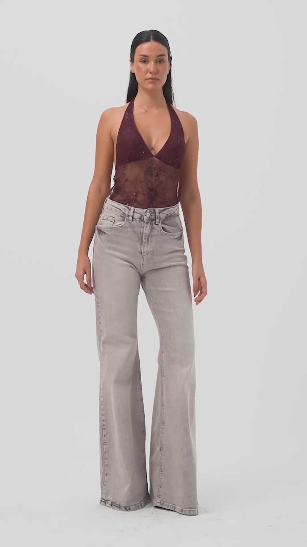 Kadın Füme Renk 2w5-1 Midrise Flare Fit İç Boy 83cm Esnek Kumaş Denim Jean