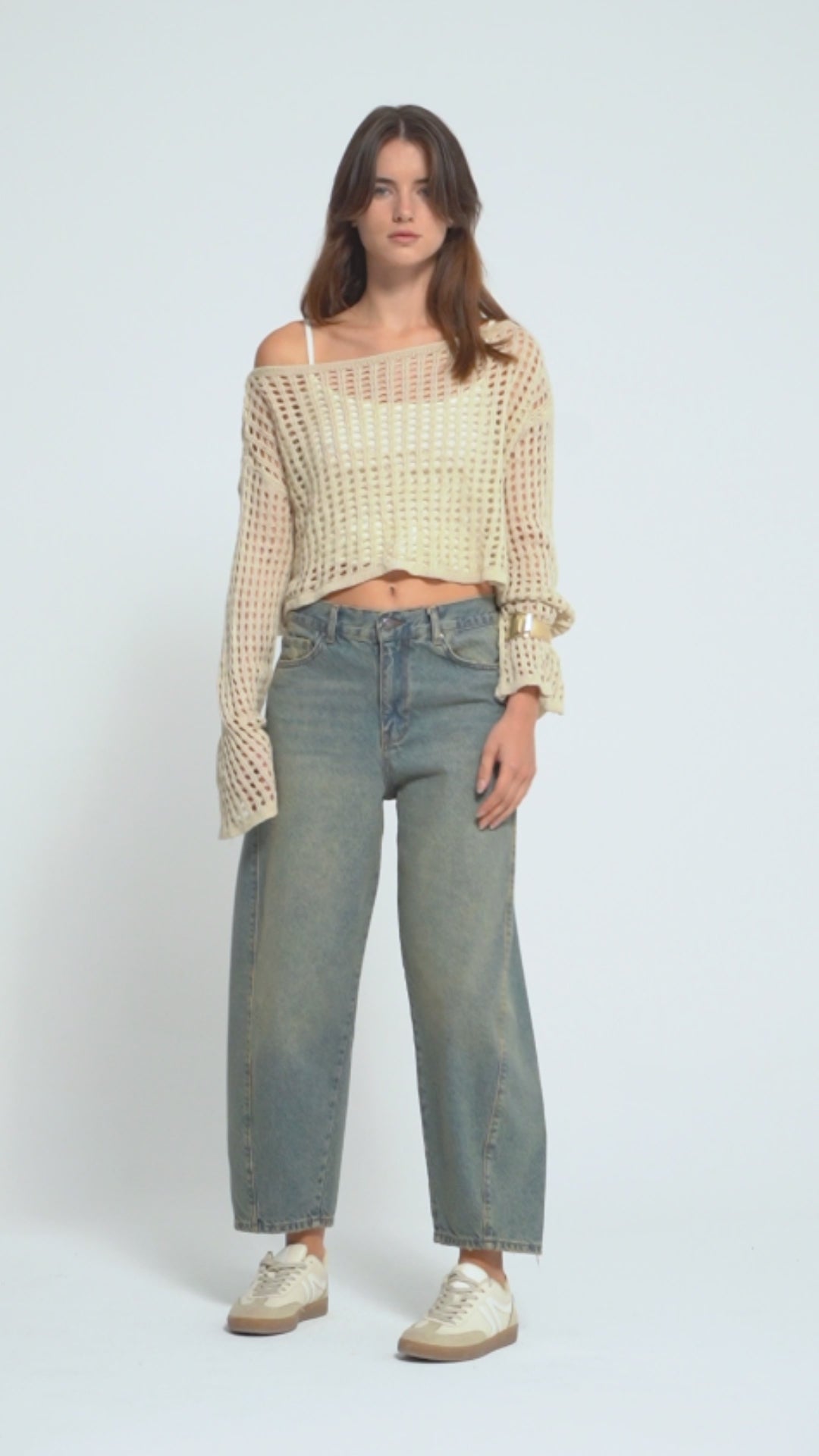 Kadın Taşlanmış Kahve Renk 4w5-88 Baggy Fit Bol Kesim Denim Jean