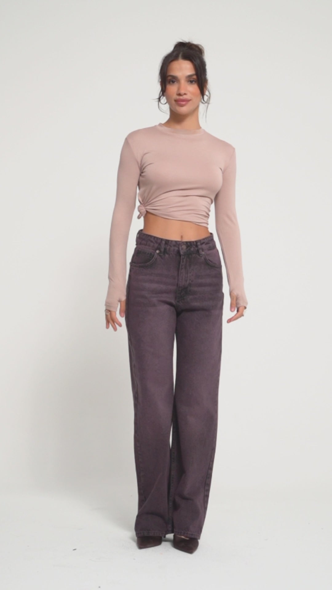 Kadın Taşlanmış Bordo Renk 2w5-131 Loose Fit Orta Bel İç Boy 80cm %100 Koton Denim Jean