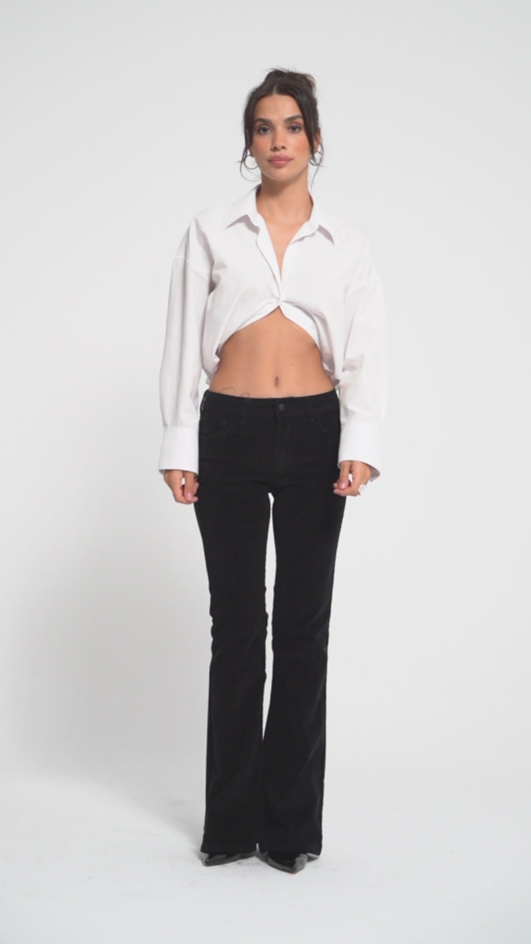 Kadın Siyah Renk 26w5-1 Low Waist Flare Fit İnce Fitilli Velvet Kadife Kumaş Pantolon