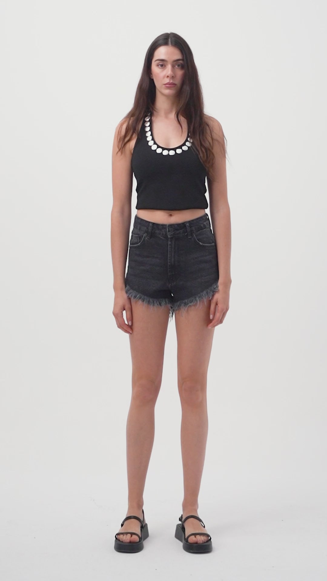 Kadın Snow Kot Rengi Luna Paça Püsküllü Mini Denim Şort