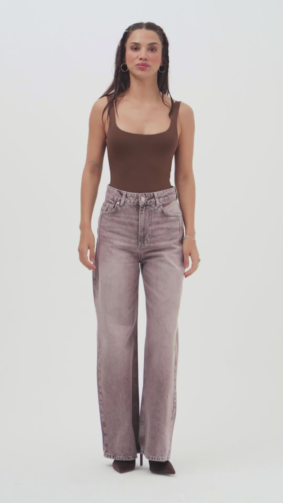 Kadın Koyu Kahve Doris 7s6-81 Straight Fit Yüksek Bel %100 Koton Denim Jean