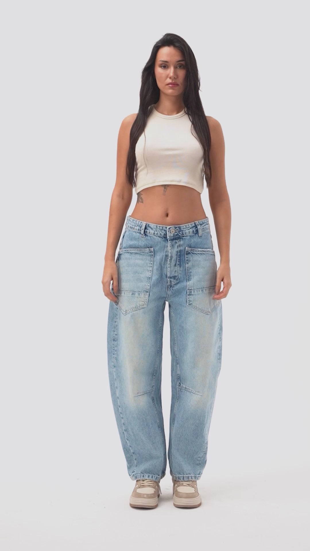 Kadın Taş Rengi 4s6-158 Elephant Leg Fit Süper Bol Kesim Denim Jean