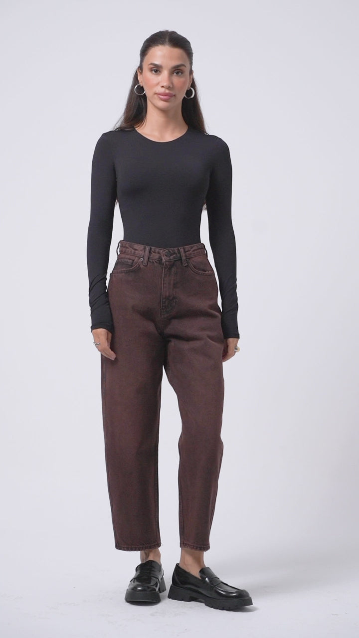 Kadın Taşlanmış Kahverengi 17w5-62 Süper Yüksek Bel Skater Fit Bol Kesim %100 Koton Denim Jean