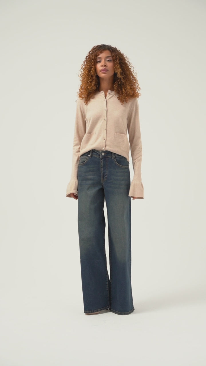 Kadın İndigo Renk 7w5-50 Wide Leg Fit Viskon Kumaş Şerit Detaylı Özel Tasarım Denim Jean