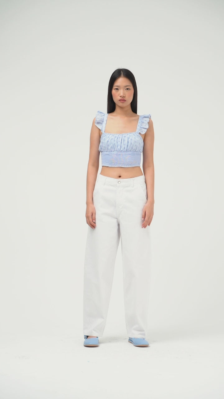 Women's Light Blue Color Thin Summer Fabric Elastic Waist Trousers