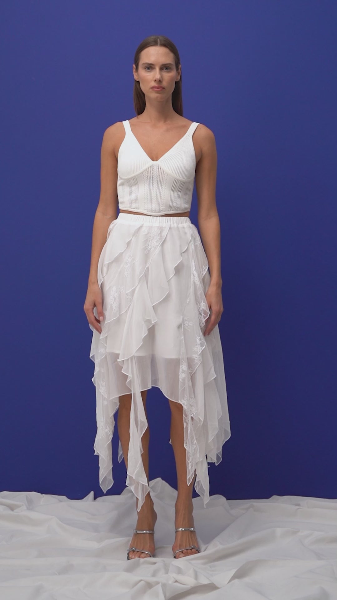 Kadın Beyaz w5 Asimetrik Kesim Dantel Tül Detaylı Özel Tasarım Etek