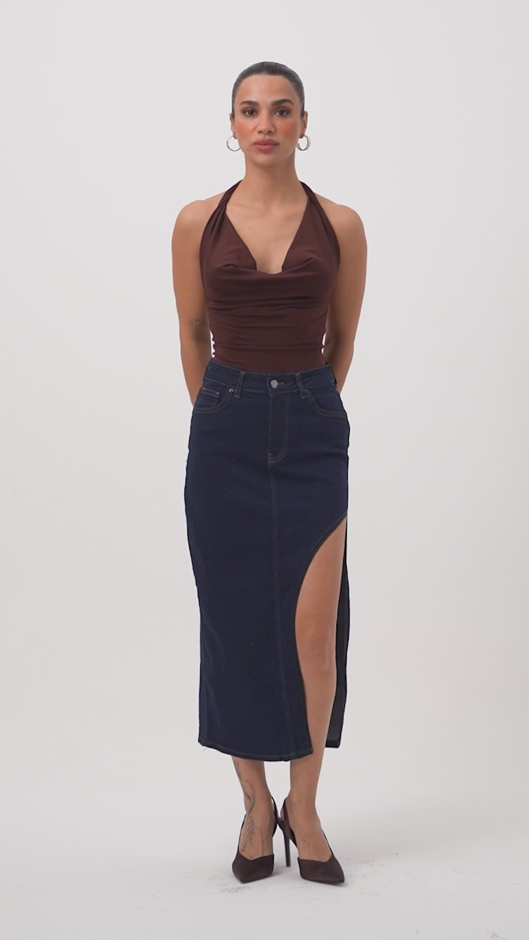 Kadın İndigo Selvedge 7s6-50 Maxi Yandan Yırtmaç Detaylı Tasarım Likralı Kumaş Denim Etek