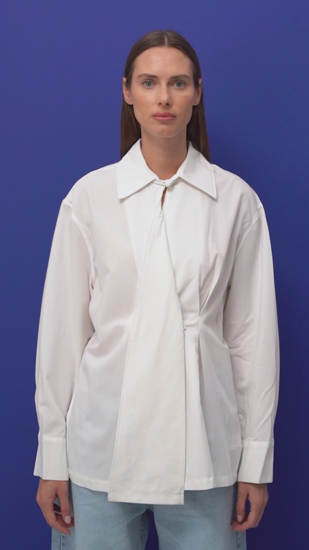 Kadın Beyaz Renk Kravatlı Tasarım Bol Kesim Gömlek