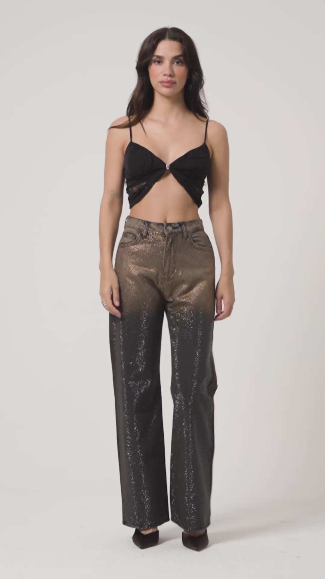 Save 20%Kadın Koyu Taş Rengi T-21w5-81 Straight Fit Çift Renk Parlak Taş Detaylı Özel Tasarım Denim Jean