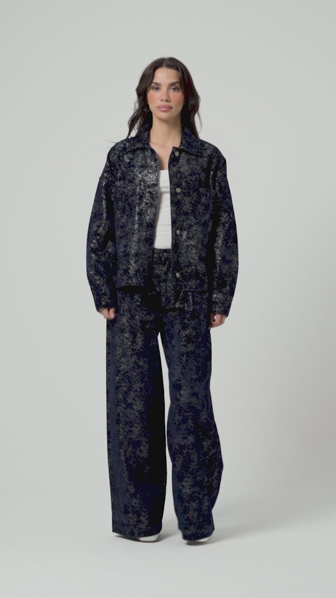 Kadın Kamuflaj Renk 1w5-28 Bol Kesim Tasarım Denim Ceket
