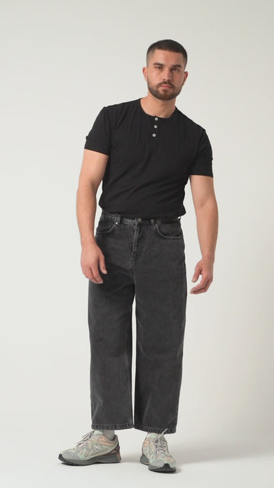 Erkek Füme Renk 3w5-14 Loose Baggy Fit Bol Kesim Cep Nakış Detaylı Denim Jean