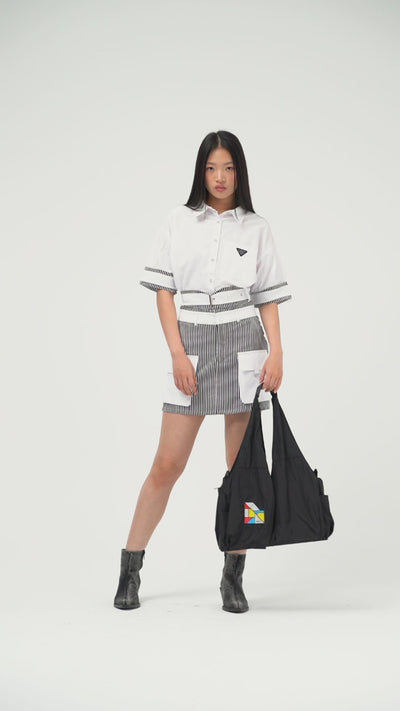 Kadın Beyaz Renk Oversize Kemer Detaylı Önü Düğmeli Crop Top Kumaş Gömlek
