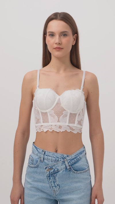 Kadın Beyaz w5 Balenli Güpür Dantel Detaylı Askılı Özel Tasarım Büstiyer