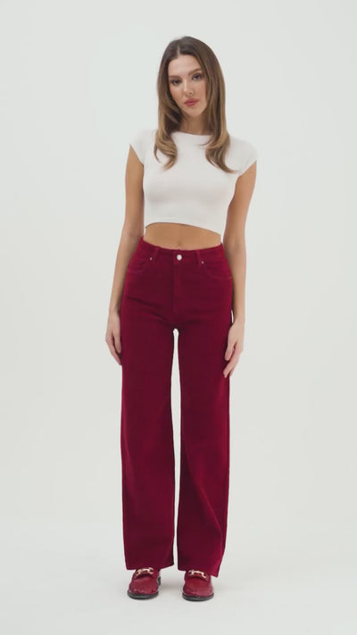 Kadın Bordo 29w5-35 Straight Cropped Fit Elastan Velvet Kadife Kumaş Pantolon