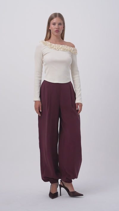 Women's Burgundy s6-35 Baggy Jogger Loose Fit Pants