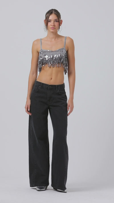 Kadın Füme Çizgili Renk 1w5-1 Süper Palazzo Fit Esnek Özel Kumaş İç Boy 80cm Denim Jean