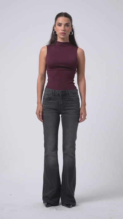 Kadın Füme Renk 2w5-1 Midrise Flare Fit İç Boy 83cm Esnek Kumaş Denim Jean